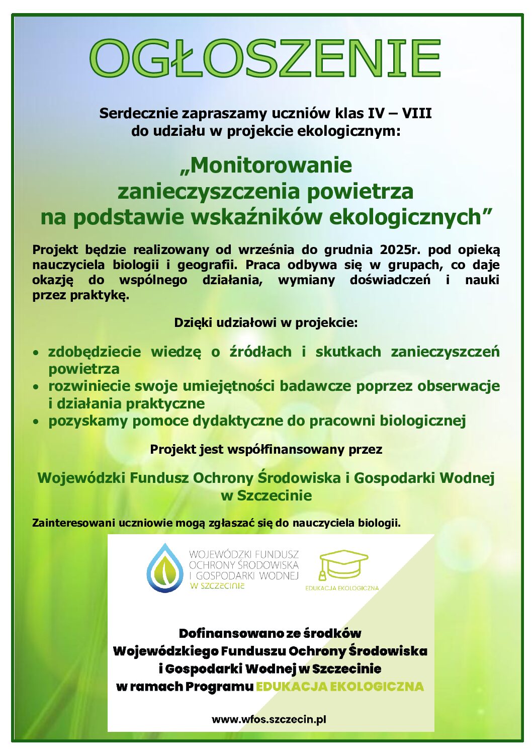 Projekt – monitorowanie zanieczyszczenia powietrza na podstawie wskaźników ekologicznych. Aktualności